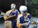 ホッケー&ダイビング?? カメラから執拗に逃げ回る Howie ガールフレンド(Carol Leffler) とヘンな格好してバイクで逃走 |